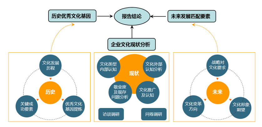 3、企业文化如何评估和诊断:对此,伟德国际betvlctor1946采用三层次文化诊断模型,从“历史”、“现状”、“未来”三个时空维度,对企业文化进行全面评估与分析,为企业文化建设奠定方向和基础。