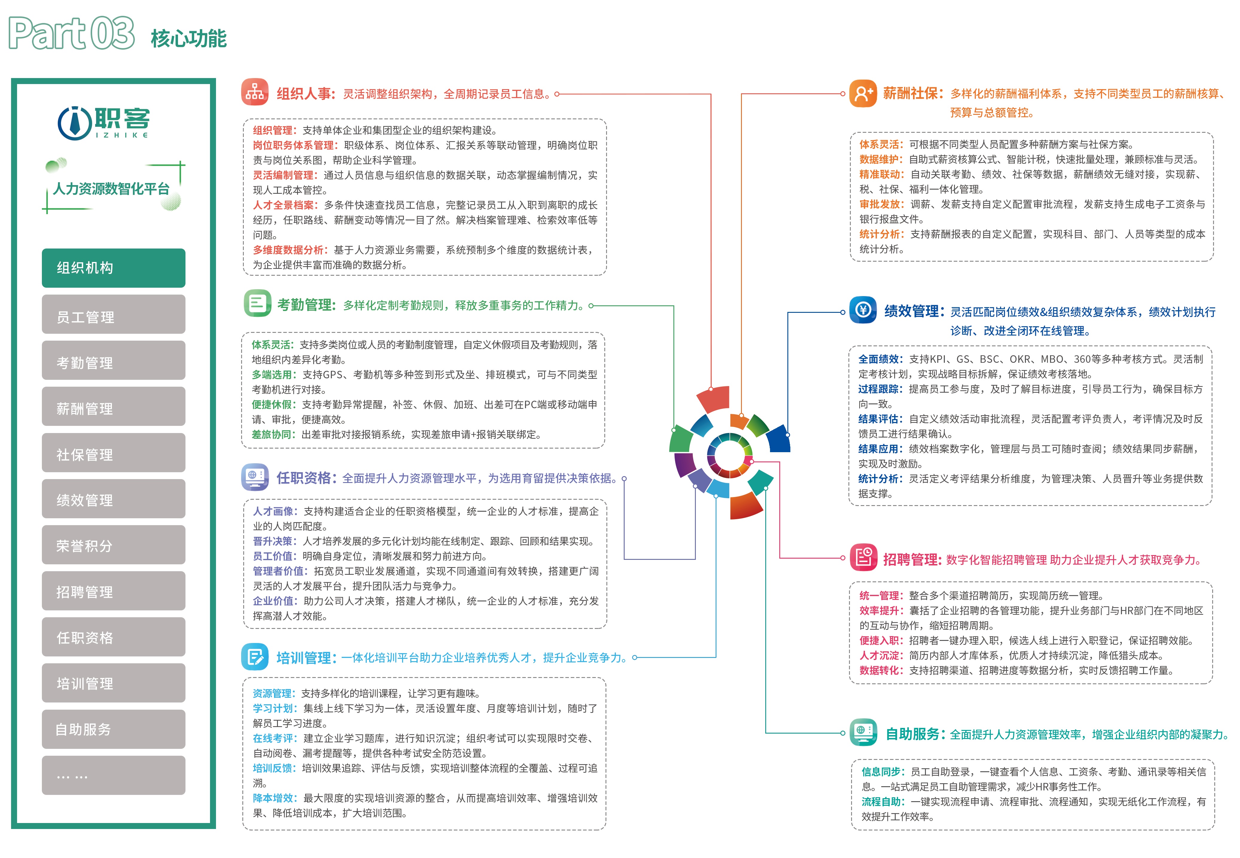 伟德国际betvlctor1946i职客支持单体企业或中型集团企业使用,支持平衡计分卡、KP1、OKR、360等多种考核方式混合使用,支持岗位职能工资、宽带薪酬、计时计件工资、提成奖励等多种类型的薪酬模式,以及针对任一组织的薪酬预算与总额管理;支持最复杂的任职资格体系搭建以及全流程评价管理:支持线上、线下一体化的培训计划、课程管理、培训实施与效果评估。单纯从各模块的专业性来看,均可与同类单项产品媲美,对于具有一定管理基础的企业来说,产品的功能相对全面和实用。