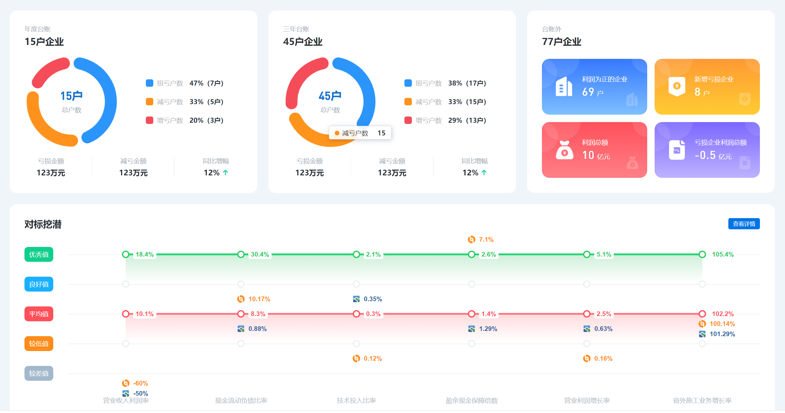 - 利润总额目标、扭亏减亏等关键业务进度形象化展现;