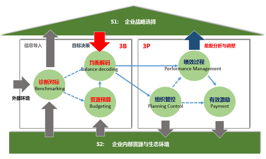 2S+3B+3P,构成了一个全新的战略规划、分解、执行、评估、激励的完整闭环,从战略管理的角度来看,这是一个“战略-组织-执行-反馈”的经典闭环,从绩效管理的角度,这是一个“绩效计划-绩效过程-有效激励-反馈”的绩效循环,两者的有机结合,成为一种支撑战略转型的新型管理工具。