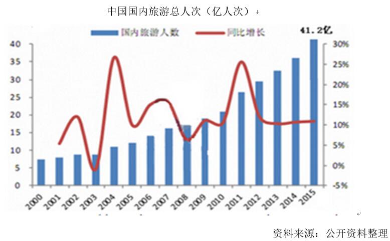 2015年全年接待国内外旅游人数为41.2亿人次,旅游总收入达到4.13万亿元,对GDP综合贡献达到10.1%,成为经济增长新引擎。另外实现了"十二五"时期旅游业发展的漂亮收官,并开启了旅游发展的新时代。