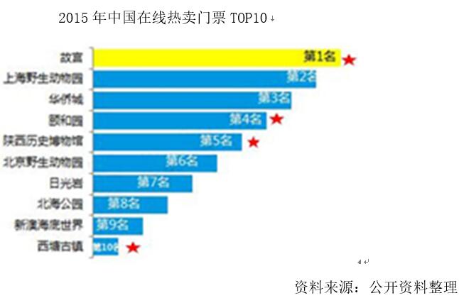 2015年热销景区门票TOP10中,以北京景区数量最多;同时,历史文化类占四成。随着文化旅游市场迅速发展,促使历史文化类旅游这种具有文化教育意义的资源成为热门产品。