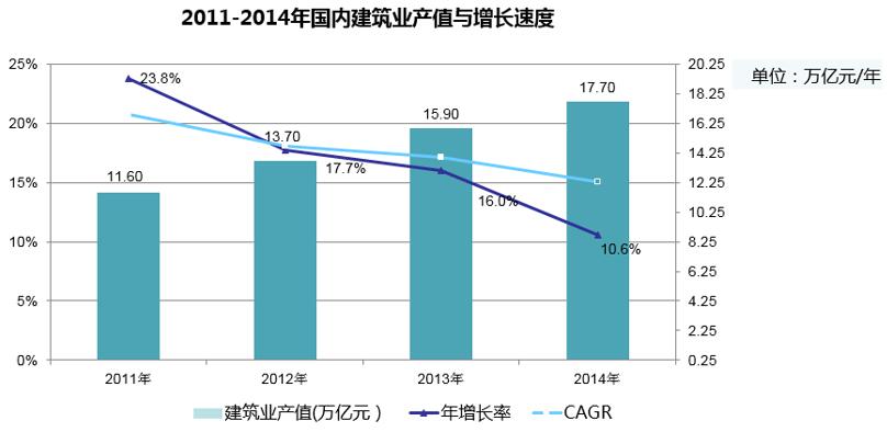 “十二五”期间,我国建筑产业发展迅速,到2015年产业年度总产值已达到20万亿元,当前行业具有如下特点: