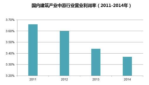 (3)从行业利润率来看,建筑工程行业门槛低,是充分竞争行业,企业分散,企业间竞争激烈,利润率已非常低,近年来呈现曲折下降的态势,2014年建筑业营业利润率总体低于3.4%。。