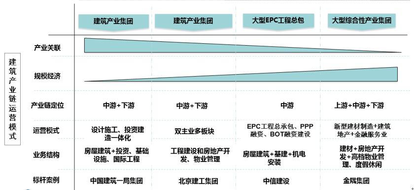 (5)为应对行业竞争,领先企业在做强做大建筑主业的基础上,不断优化业务结构,延伸产业链条,积极向市政基础建设、公路机场、水利水电等国家重点投资产业的下游领域拓展,由单一业务向复合业务方向发展,由单纯的施工向规划设计-投资(PPP)-建设-运营一体化的方向发展。