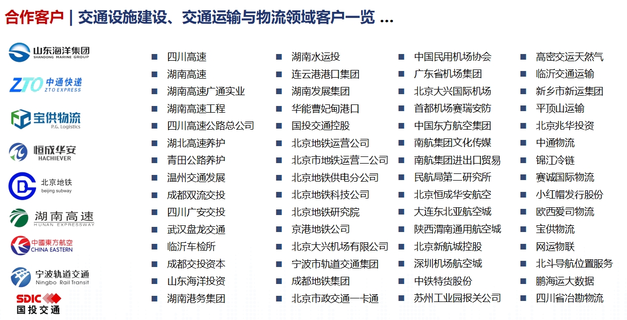 (2)在公路客货运输方面,伟德国际betvlctor1946先后服务平顶山交运、新乡交运、高密交运等客货运综合企业,以及兆华物流(沥青物流)、中通物流(汽车物流)等专业物流公司,以及包括北青报小红帽物流、红衣物流在内的城市发行与快递公司,以及网运物联、车友宝等互联网客货运服务公司。
