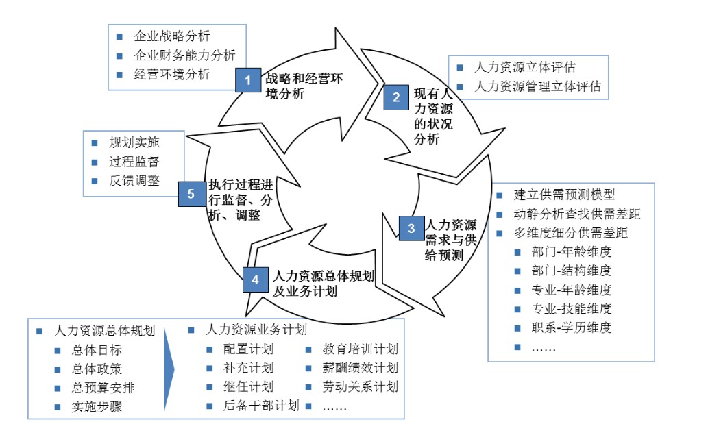承接公司战略,在系统分析内外部环境和历史经验的基础上,形成未来人力资源体系建设的指导思想、总体目标、实现路径、工作任务与量化指标,建立基于业务驱动因素的人才队伍与数量规划,保障战略的实现。