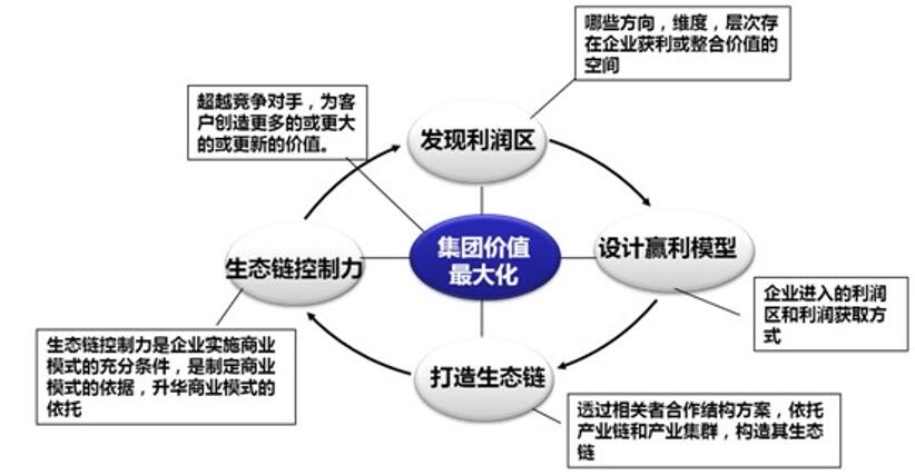 伟德国际betvlctor1946以实现集团价值最大化为核心目标,从发现利润区、设计赢利模型、打造生态链、生态链控制力等四个维度,对商业模式进行创新设计。