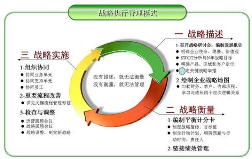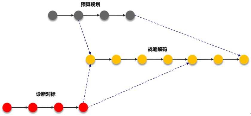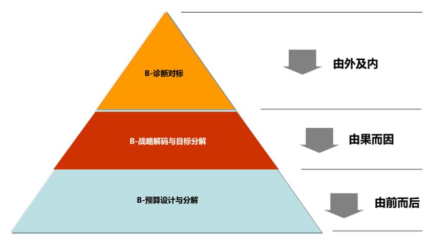 通过战略性对标(Benchmarking)明确组织差距;通过战略解码形成任务列表、绘制战略地图,编制BSC指标体系;通过战略性预算管理(Budget)对经济指标进行量化分析,通过战略绩效一体化管理,化战略为执行。