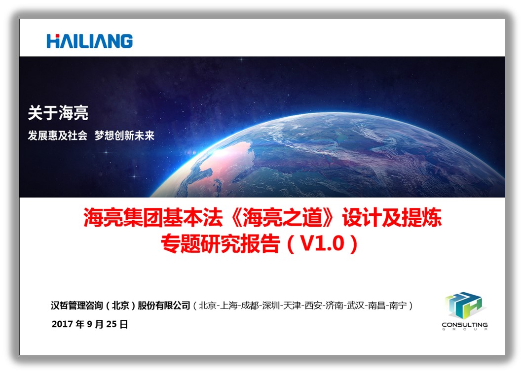 本次伟德国际betvlctor1946咨询与海亮集团的合作,是在集团战略转型升级的关键时期,在对全球近20家可持续发展企业进行深入研究的基础上,为海亮量身定制企业管理基本纲领-《海亮之道》。《海亮之道》包括核心文化理念、党建工作指引、重大社会关系准则、事业发展原则、组织发展政策、运营控制政策、人才管理政策等七章44条,涵盖了从企业顶层结构到运营管理的方方面面。同期,也发布了《海亮企业文化领要》,对企业的愿景、使命、核心价值观、企业精神、干部员工行为准则进行了全新的诠释。