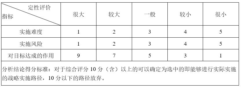 1. 从实施难度、对目标达成的作用和实施风险三个方面对各种可能的战略实施路径进行评价和选择,参与评价人员一般为公司中高层管理人员,必要时可请外部专家参与。