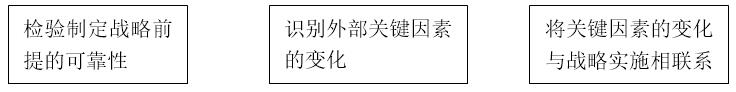 一般来说,战略都是根据假设、预测的背景制定的。战略决策者们往往都会有意无意地作出有关未来需求、技术、价格、政府政策、市场竞争以及一系列外界变化因素的推测,这些推测就是制定战略的前提,而外部环境的变化又往往会影响到推测的有效性。因此,监视外部环境因素的变化,特别是关键战略因素的变化,就显得尤为必要。需要进行的工作如图2所示: