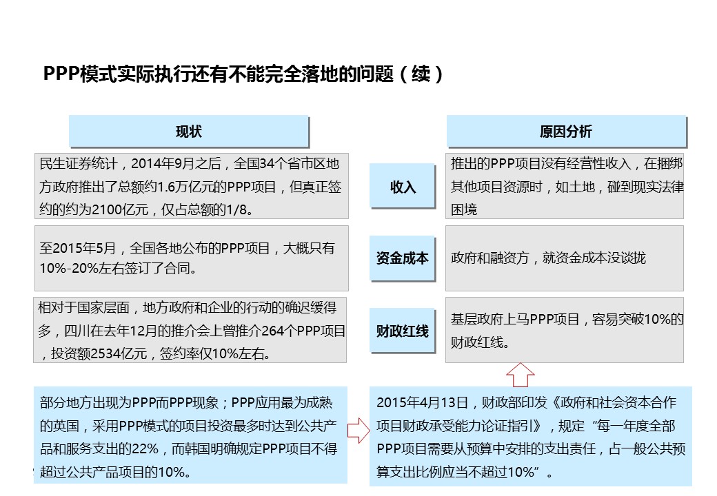 PPP项目中除单纯股权投资关系外的公私合作机制对混合所有制改革提供很好的借鉴;PPP模式的定位,应从满足融资需要提升到制度供给创新的需要。