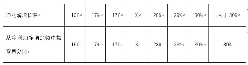 表2-1 年度股权激励基金提取比例表