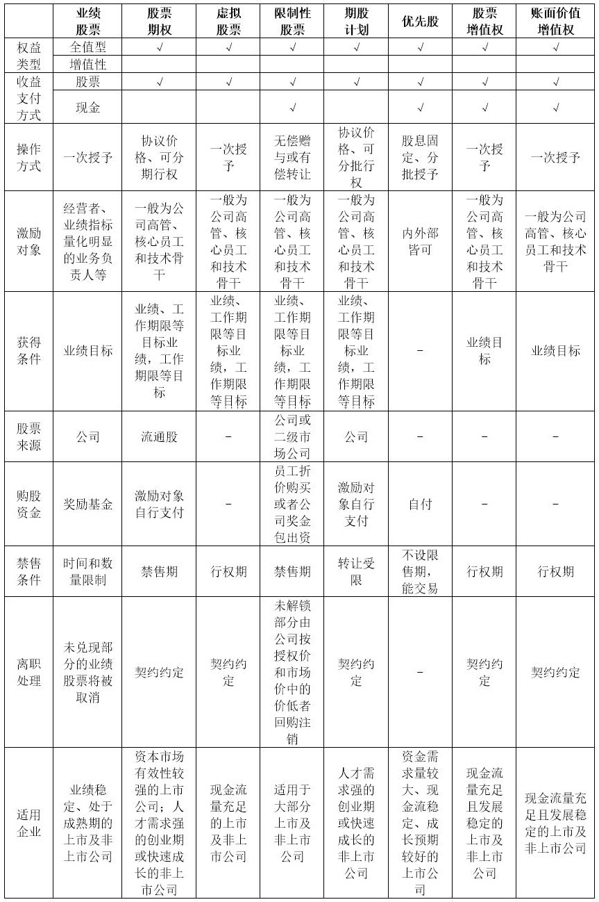 总体而言,无论是哪种激励模式,都有其适用性和局限性,应该结合实际情况,使用一种或多种激励模式结合的形式。且企业在长期发展过程中,经常会根据自身特点设置一些微创新的激励方式,如影子股票、亚式期权等,尽管名称无数,但一般是变形、组合后的轻微变化。同时,我们也注意到,现实的企业在股权激励的方案设计过程中,存在复合利用的诸多现象,因此我们认识这些种类的同时也应该要辨析其不同,以方便我们在选择过程中的灵活运用。