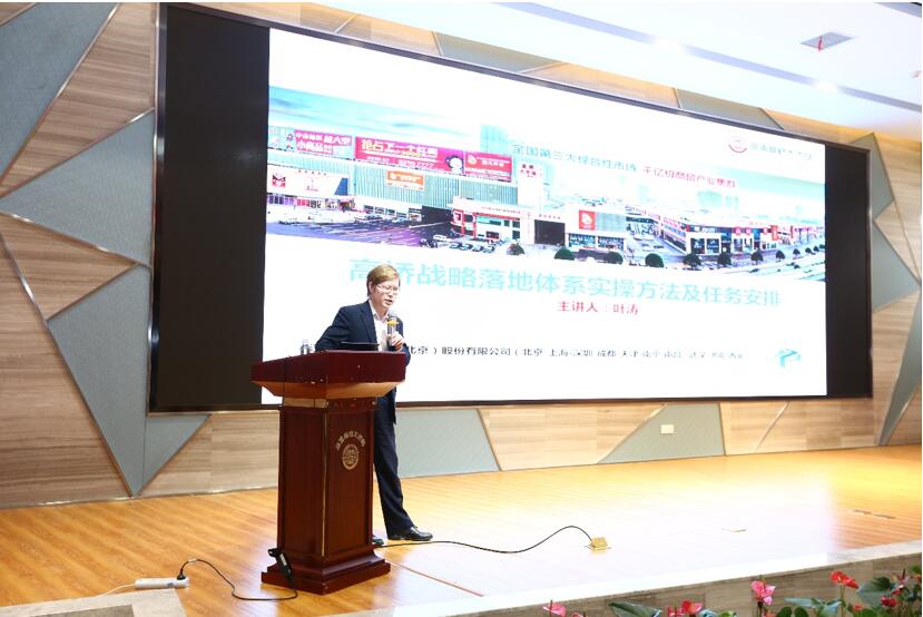 随后,伟德国际betvlctor1946咨询第七事业部总经理叶涛做了题为《高桥战略落地体系实操方法及任务安排》的宣导,针对高桥大市场业务战略的清晰和落地,叶总从实操层面提出“环境识别-战略地图-关键成功因素-行动计划-组织支撑”的“战略落地五步法”,并详细介绍了五步法的内容、工具和表单,讲解了业务战略落地路径梳理的工作思路和计划安排,并对总体工作进行了部署。