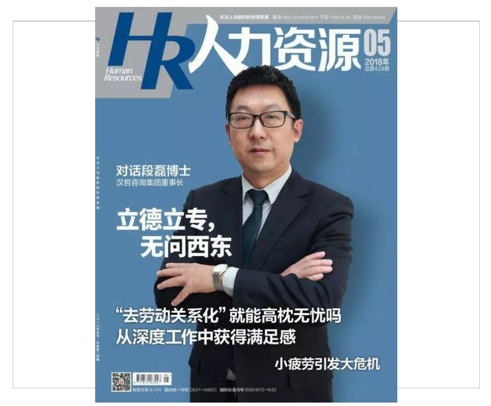 《人力资源》杂志2018年第5期(总第424期)以伟德国际betvlctor1946咨询(股票代码:832830)首席专家段磊博士为封面人物,刊登了题为《立德立专,无问西东》的专题对话访谈录。