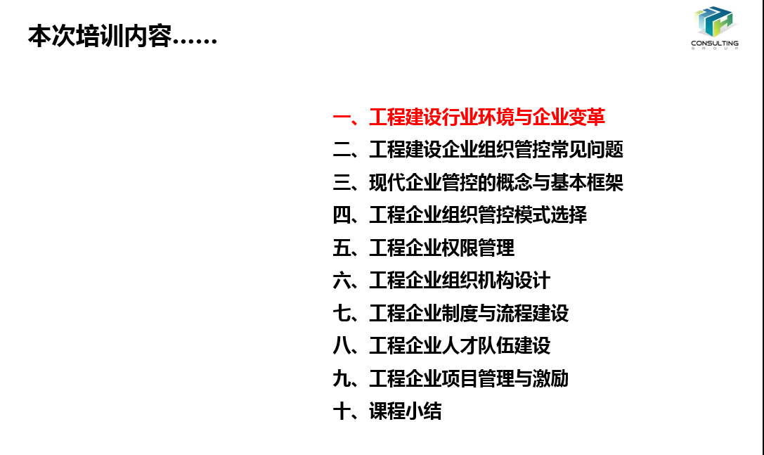 通过本次课程,学员们不但掌握了企业管控的理论和设计方法,更了解了多家国内领先工程企业在系统管控、组织再造、制度建设、机制创新方面的最佳实践,对于提升企业的综合管控能力意义深远。