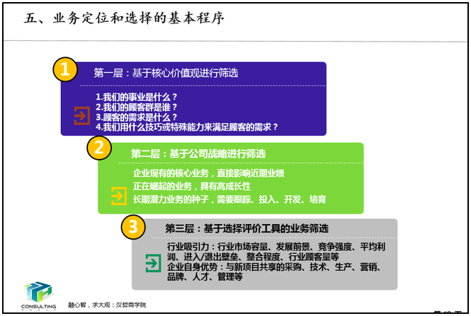 本次培训从战略与战略规划的基本概念讲起,全面介绍了内外部环境分析、标杆研究、战略定位与战略选择、商业模式设计、战略支撑体系设计的技术和方法,课程采取理论讲授、工具方法练习、案例学习相结合的方式,期间穿插了对海兰信、蒙牛两家企业战略发展历程的深入讨论与研究,以及由伟德国际betvlctor1946咨询所完成的战略规划全案的技术路线的分析和讲解。期间,学员也就自己所感兴趣的战略问题进行了热烈的提问和讨论。