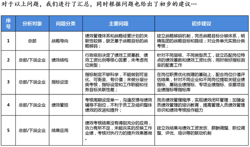 项目启动之初,通过内部资料研究、企业深度访谈、员工调查问卷、外部标杆资料对比,政策研究等维度进行全面诊断,发现问题并提出改进的思路。