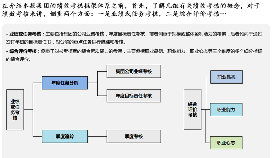 根据集团战略目标,制定和优化集团和所属子公司组织和个人绩效管理体系,通过建立一套客观科学、公平公正的绩效考核办法 ,提升集团管理效率。