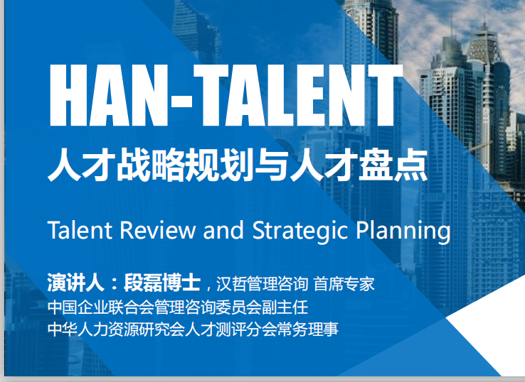 近年来,经济结构转型升级、科技创新层出不穷,各行各业都认识到,需要重新认识商业世界,需要对企业的未来进行系统谋划,而谋划的重要内容之一就是未来的人才与人才管理。有关于人才盘点、人力资源审计、人才战略规划,业内有各种不同的说法,这三者之间是否有联系,是怎样的联系和区别,作为企业如何运用这些方法去规划和指导人才管理实践?带着这些问题,本次论坛请到了中华人力资源研究会人才分会常务理事、北京大学人力资源开发与管理研究中心专家、中企联管理咨询委员会副主任委员、从事战略人力资源体系建设与培训17年的实战型专家段磊博士为大家剖析三个概念、讲述三种方法、分享三个案例。