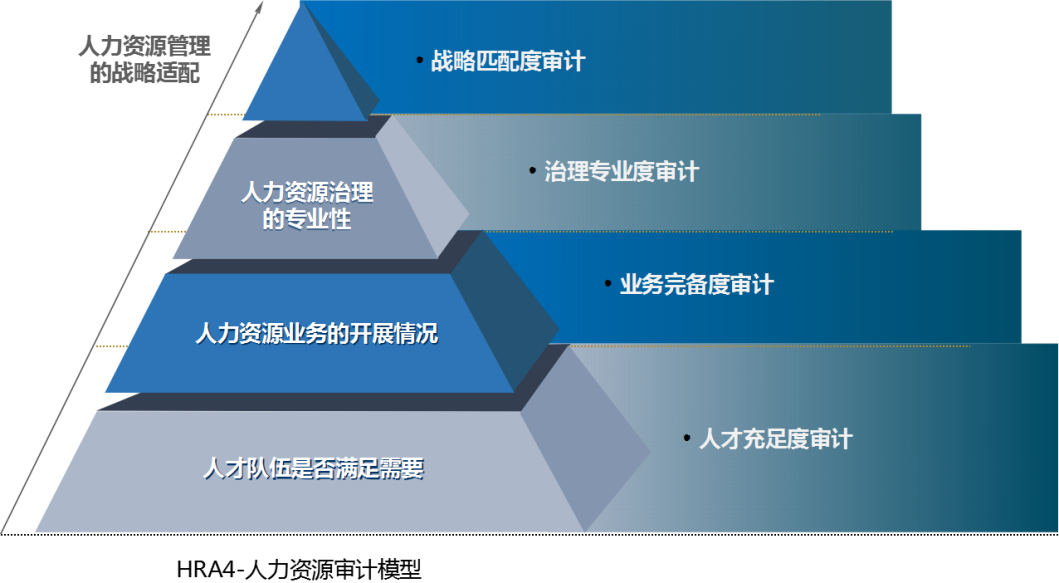 人力资源四维审计,是从人力资源及管理的“战略匹配度审计”、“治理专业度审计”、“业务完备度审计”、“人才充足度审计”四个维度对人力资源管理工作的状态进行审计和评估。