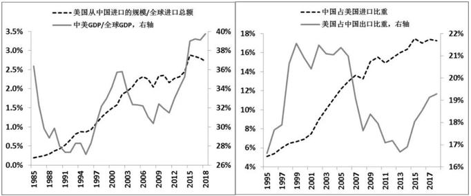 目前,美国从中国的进口规模占全球进口总额的3%左右,中美经济占全球经济总量比重也接近40%,加之中美双边贸易规模占中美各自贸易总量的比重保持在20%左右,因此仅从贸易层面,就可显见中美经济关系调整对于全球经济运行的影响程度和广度。