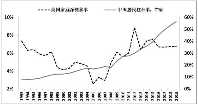 图2:美国家庭净储蓄率和中国居民杠杆率