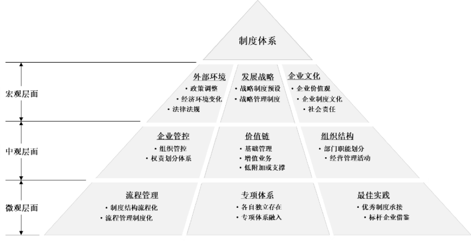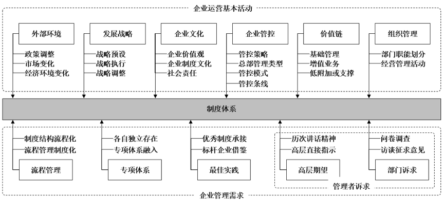 并从企业运营基本活动和企业管理需求两方面进行制度体系搭建: