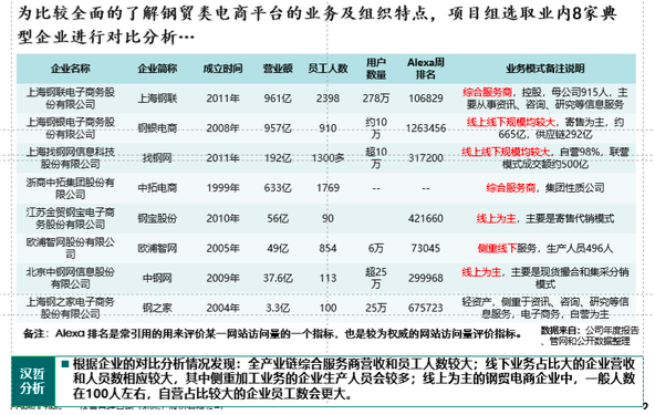 2、外部对标。通过与目前发展较为成熟大宗商品电商平台对标,探究其组织发展、部门岗位设置、各部门人员结构比例等规律,设计公司的组织架构。