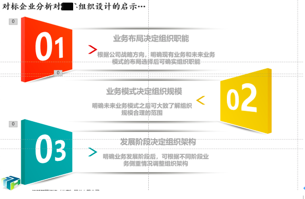 3、着眼未来。基于公司运营模式、业务板块、发展规划,设置与之相匹配的组织架构,既能够承接目前公司发展现状,又能够满足未来5年公司的发展需求,优化公司的组织架构、部门设置及人员编制。