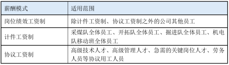 公司的薪酬模式分为三类:岗位绩效工资制、计件工资制、协议工资制,各类薪酬模式的适用范围如下: