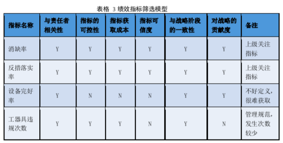 “采用”即表示可用于考核,“下一层考核”即可作为下一层组织考核的备选指标,而“监控”即表示不直接用于考核,只用于检测和跟踪。