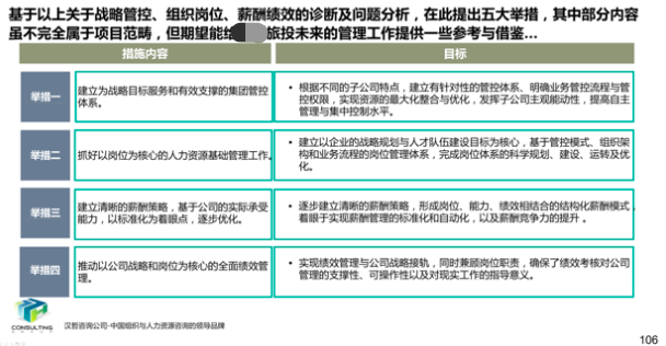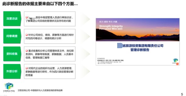 项目启动后,项目组通过深度访谈、问卷调查、资料收集、外部分析四个方面对集团现状进行全面诊断,发现目前存在的问题并提出四大核心举措,明确改进思路。