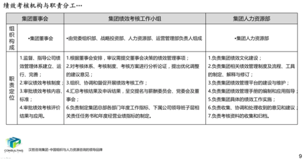 在集团绩效的设计中,优化了原有的绩效考核模式,对绩效考核管理过程中各个管理责任主体及其权责进行了明确,形成较为科学、明确的绩效考核流程,同时通过分解部门职能、结合集团发展需要,针对性制定了相应的绩效指标库。