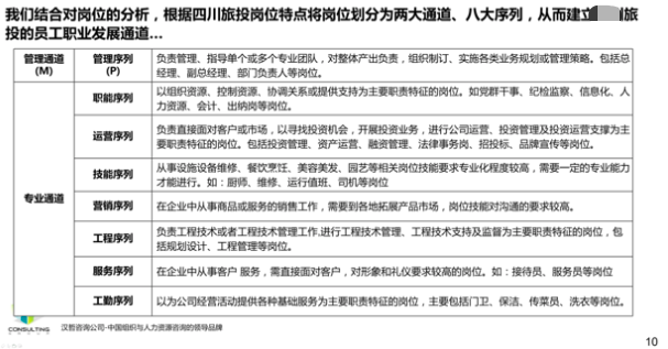 3、优化职业发展通道。根据集团人才发展现状、现有职业发展通道情况以及人岗匹配程度,建立岗位入职标准,对现有人员岗位能力进行分析匹配,并设计管理和专业双通道,建立配套的评价机制和人才培养机制,提高人岗匹配程度以及人才市场化程度,进而加强集团的市场化竞争水平。