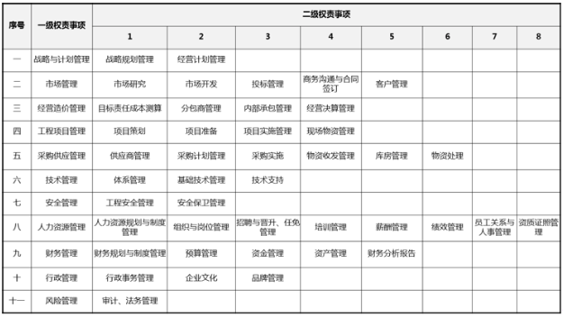 基于组织架构和功能定位,梳理出11个一级大类,共43个二级细类下的各项管控事项,逐一明确各级管控权限。