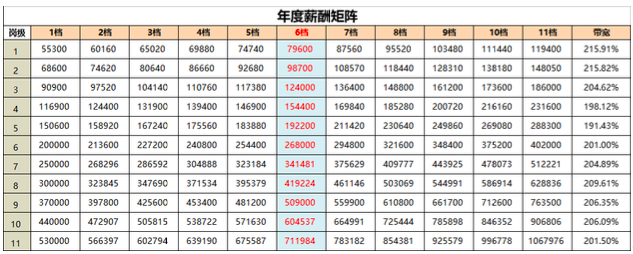 6、调整带宽:未来在薪酬设计上要将带宽进行拉宽,形成具有竞争力的薪酬体系,以达到优秀人才引进的目的。