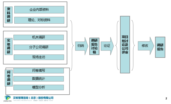 对公司机关和各分子公司进行深入调研。共计深入专访102人次,开展员工座谈会3场,形成访谈纪要20余万字;进行多次车间现场走访;开展问卷调查,收集3143份样本;针对各业务与职能条线开展专项问题调研;对国内外行业标杆企业进行深度研究;对内外部相关资料进行严谨分析。