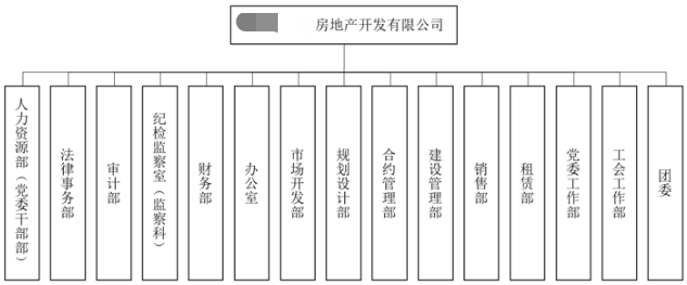 公司机关共设置12部2室,分别是:办公室、市场开发部、销售部、合约管理部、建设管理部、财务部、审计部、法律事务部、租赁部、规划设计部、人力资源部(党委干部部)、党委工作部、工会工作部、纪检监察室(监察科)。公司现有正式职工152名,内招员工20名,班子成员9名,其中有4名兼任项目公司执行董事。