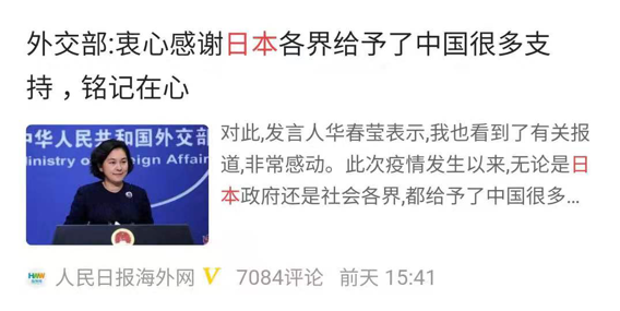 疫情一发生,日本政府就表示将全力协助中国抗击疫情。日本政府和日本许多地方、企业主动向中方捐赠口罩、护目镜、防护服等防疫物资。