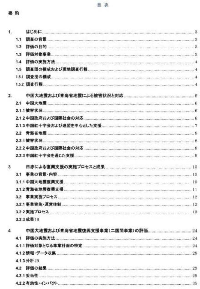 2010年4月14日,青海玉树地震,2698人遇难。日本红十字联合日本雅虎等网站为灾民募捐,且不仅参与救灾,还包括支援后期建设。最终他们将几年支援工作用65页的报告写的明明白白,所有人都可以去官网下载。这是目录:
