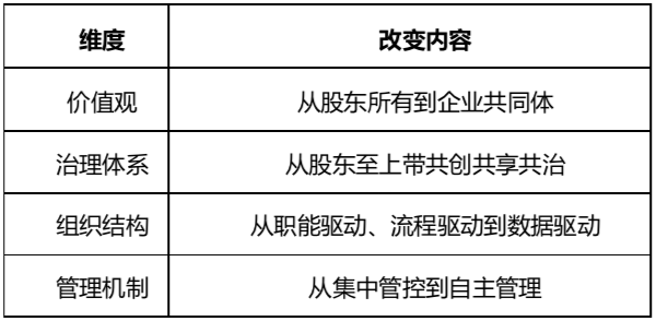 另外企业的领导者要从组织者、指挥者、监督者、资源和利益分配者等角色转换成为布道者、设计者、合作伙伴、支持者的角色,才能在这个新时代完成组织变革。