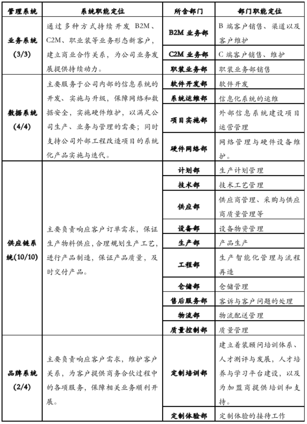 酷特智能组织机构中主要部门的功能定位(表2:酷特智能主要部门功能定位):