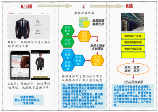 这种经营模式特点:“由订单驱动的大规模个性化定制”(Customer/BusinesstoManufacturer+MadetoMeasure,简称为C/B2M+MTM)。