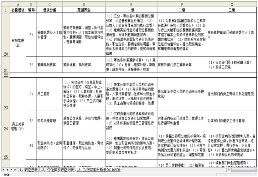 开展该公司、下属单位两级组织功能分析,对各级部门的职能、职责、权限等进行梳理,实现职能梳理横向到边、纵向到底、上下贯通。据此提出组织职能方面的优化建议,实现总部、下属单位职能的清晰化、规范化。