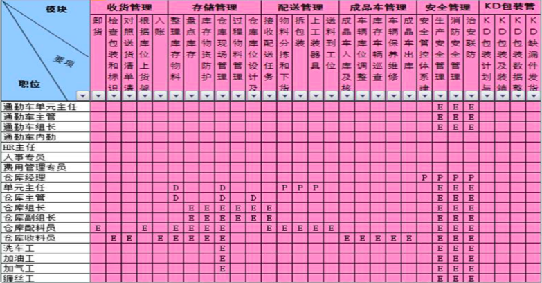 采用DPE矩阵工具将部门职能、任务分解到岗位。