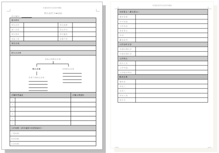 结合以上分析,参照外部对标企业岗位设置,最终确定岗位设置方案。按照确定的岗位说明书模板与编撰原则,制定《岗位说明书》。