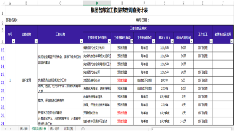 职能部室岗位采取工作饱和度测量法。具体步骤为: